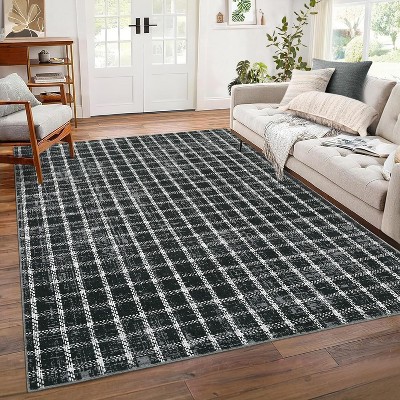 Washable Runner Area Rug, Non Slip Non Shedding Print Carpet, Modern Stain Resistant Foldable Soft Door Mat for Kitchen Hallway, Black+White 9*12ft
