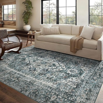 2x6 Washable Runner Rug, Modern Floral Leaf Print Carpet, Stain Resistant Non-Slip Low Pile Floor Cover for Hallway Kitchen Bedroom, Green