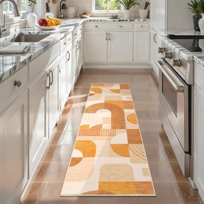 Washable Scalloped Area Rugs, Modern Bordered Floor Mats, Non-Slip Contemporary Accent Rug, Non-Shedding Soft Low Pile Indoor Carpet for Living Room