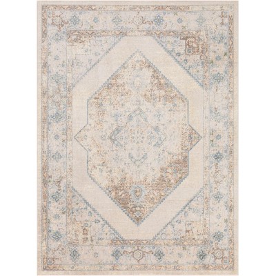 Washable Symmetrical Striped Area Rug, Stain Resistant Low Pile Carpet with Non-Slip Backing for Bedroom Living Room, Blue