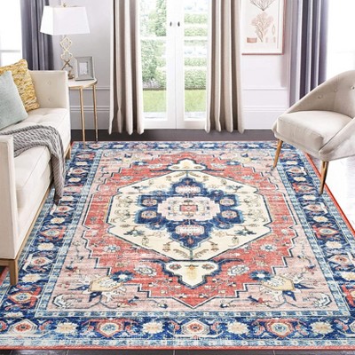 Washable Tassel Bordered Rug Non Slip Low Pile Rug Soft Throw Floor Cover Foldable Indoor Carpet for Living Room Bedroom Playroom,Pink/9'x12'