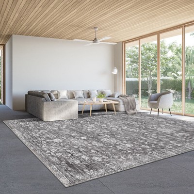 Washable Vintage Floral Distressed 9x12 Rug Non Slip Low Pile Rug Soft Foldable Rugs Living Room Bedroom