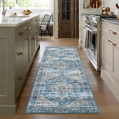 Washable Vintage Medallion Rug Non Slip Low Pile Rug Soft Retro Throw Floor Cover Foldable Indoor Carpet for Living Room Bedroom,Grey/2'x6'