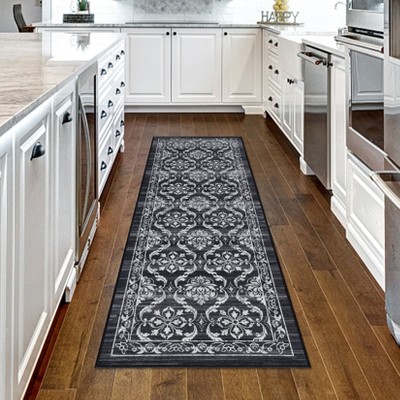 Washable Vintage Medallion Rug Non Slip Low Pile Rug Soft Throw Floor Cover Foldable Indoor Carpet for Living Room Bedroom,Black/8'x10'