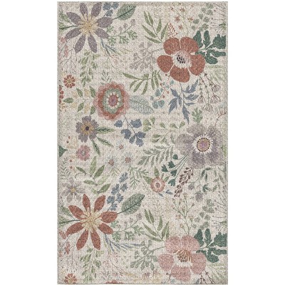 Washable Vintage Rug Non Slip Low Pile Rug Soft Throw Floor Cover Floral Foldable Indoor Carpet for Living Room Bedroom,Orange Yellow/2'x6'