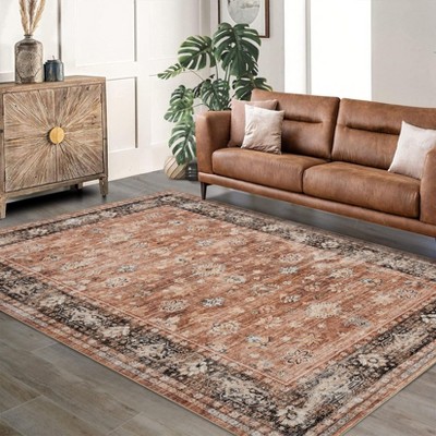 Washable Vintage Rug, Non Slip Non-Shedding Floor Mat, Soft Low Pile Thin Foldable Throw Carpet for Bedroom Nursery Dining Room, Brown 4*6ft