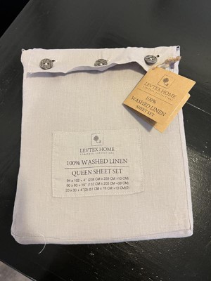 - LEVTEX HOME WASHED LINEN SHEET SET: Our 100% Washed Linen sheet set is made from French linen and includes flat sheet, fitted sheet, and pillow cases. Breathable and cool to the touch, linen is naturally temperature regulating and valued as one of the most luxurious fabrics to sleep in.