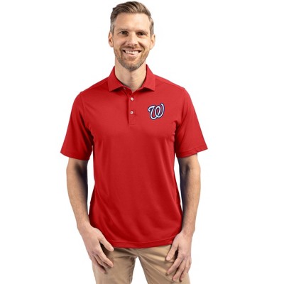 Washington Nationals Cutter & Buck Virtue Eco Pique Stripe Recycled Mens Polo - Red - 2X Large