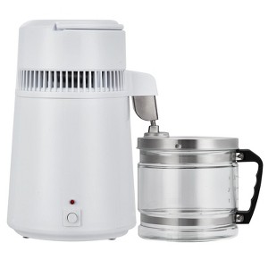 Water Distillers for Home, 1 Gallon Countertop Distilled Water Machine with Automatic Shut-OffProduct Description:Produce exceptionally pure drinking water with this efficient 1-gallon countertop water distiller. Designed for daily home and office use, this system utilizes a simple distillation process to remove over 99% of contaminants, including dissolved solids, heavy metals, and chemicals. With one-touch operation and automatic shut-off safety, it effortlessly generates up to 6.7 gallons of clean, great-tasting distilled water every 24 hours. The durable stainless steel and glass construction ensures long-lasting performance, making it an eco-friendly and reliable alternative to bottled water.Key Features:1. High-Efficiency 750W Distillation: A powerful 750W heating element quickly boils water, effectively separating impurities through evaporation. The system produces approximately 0.28 gallons of distilled water per hour, delivering up to 6.7 gallons in a 24-hour cycle for a consistent supply.2. Automatic Shut-Off & One-Button Operation: Designed for ultimate convenience and safety. Simply press the start button, and the unit will automatically power off once the distillation cycle is complete, preventing overheating and providing worry-free operation.3. Durable & Safe Construction: Built with high-quality 304 stainless steel internal components and a food-grade glass collection container. This robust design resists corrosion and ensures no plastic taste, guaranteeing the purity and safety of your distilled water.4. Advanced Cooling System for Maximum Output: Features an efficient cooling system with a stainless steel condensing coil and a four-blade aluminum fan. This design ensures rapid vapor condensation for optimal distillation performance and consistent pure water production.5. Easy Maintenance with Included Cleaning Aid: Keeping your distiller in top condition is simple. The unit comes with citric acid, making it easy to dissolve mineral scale buildup during regular cleaning, which helps maintain peak efficiency and extends the appliance's lifespan.