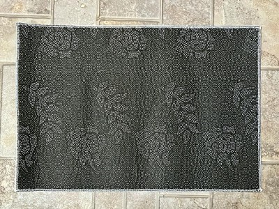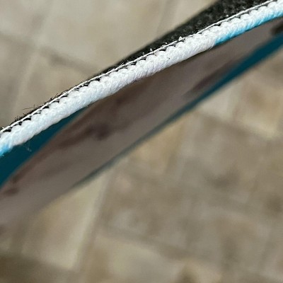The mat I received has a ribbed surface, while the photo of the mat appears smooth. The edges are squared and seems unfinished rather than rounded, there is a visible printed code in the corner. While it does have a backing that appears textured and grippy, in actual use it still slides around. The mat is very thin with no noticeable padding or cushioning. Target did issue a refund, but be aware that the item received does not match the description or photo.