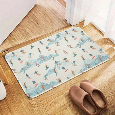 Watercolor Winter Bullfinches Bathroom Rugs Winter Bath Mat Absorbent Non Slip Bathroom Mat Christmas Soft Floor Carpet 16x20 Inches