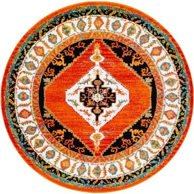 Watercolor WTC695 Power Loomed Area Rug - Orange/Green - 6'7" round - Safavieh.