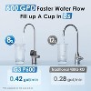This system includes a smart faucet with a TDS monitor and filter life tracker, providing real-time updates on water quality and filter status. Offering 600 gallons per day and a 2:1 pure-to-drain ratio, it efficiently delivers fresh water quickly, filling an 8 oz cup in just 8 seconds. Its sleek, tankless design saves 70% of under-sink space, and filter changes are hassle-free, requiring no tools. The G3 system operates on under-sink electricity and fits compactly within most cabinet spaces.
