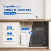 The sleek, compact design of this tankless RO system saves up to 70% more space under your sink compared to traditional tank systems. Filter replacement is incredibly easy, taking only 3 seconds without the need to move the system or use any tools. Note: This system requires under-sink electricity for operation.