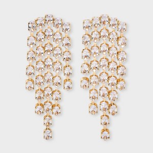 A: The earrings have a waterfall-like design that is studded with stones for added glam.