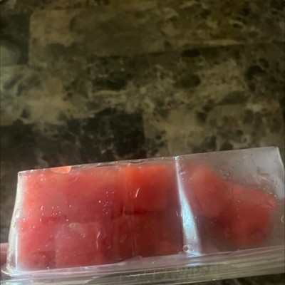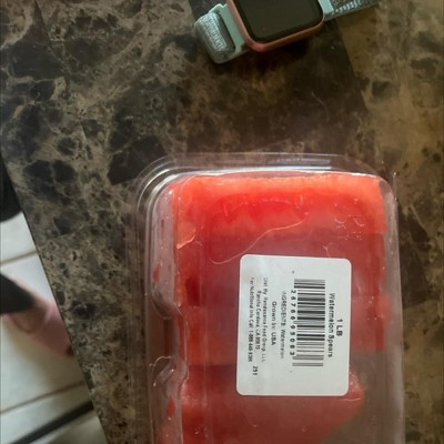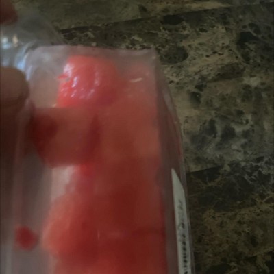 Nothing like the picture, weighs 15 ounces WITH the container so obviously not a pound of watermelon