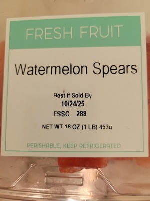 Fresh-cut watermelon spears are an easy solution to on-the-go snacking; eat straight from the container! Made from the highest quality, freshest ingredients, Watermelon Spears offer time-saving convenience and reduced food waste. This product is made in a dedicated food facility under strict food safety requirements. Enjoy fresh, healthy food any time of day with Watermelon Spears!