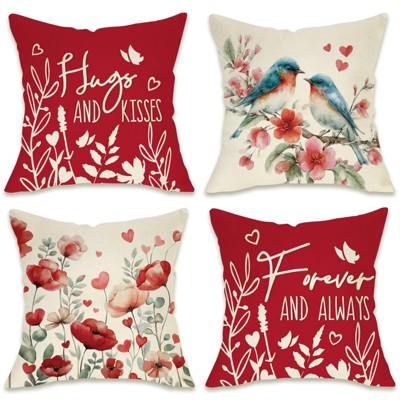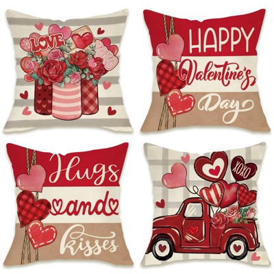 Hello Valentines Day Decorative Throw Pillow Covers 18 x 18 Set of 4, Red Heart Love Grows Here Buffalo Plaid Porch Outdoor Home Decor, Romantic Anniversary Wedding Sofa Couch Cushion Case