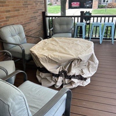 [This review was collected as part of a promotion.] I’m so glad I found this patio table cover. The quality of this cover is exceptional. It’s tear proof, fade resistant, and made of very thick And high-quality material. I like that it has a drawstring that I can use to tighten around my table, so during the winter, the cover won’t fly up or blow away. I like the design and pattern, and the price was affordable. Great way to keep my table protected all winter long. I received an incentive to write this review.