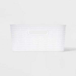 Bring a clutter-free organized look to your home with the 11-Liter Medium Wave Design Rectangle Basket from Brightroom™. Made from durable material for long-lasting use, this storage bin showcases a wave design for a stylish look, while cut-out handles make it easy to carry from one place to another. Great for storing clothes, magazines, toys, keys and more, this storage solution will help keep your home clutter free. Whether you need a spot to stash spare blankets or organize everyday items, this decorative basket helps you bring order to any space in your home.