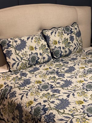 [This review was collected as part of a promotion.] Im so excited this is adorable. The floral pattern looks great in my guest room, which already was deemed the blue room. It's made well and is light, so it's a great coverlet for my duvet. I love the matching pillow shams. The backside is a nice blue, which looks great to overturn the top. Overall, it really pulled the room together and looks beautiful.