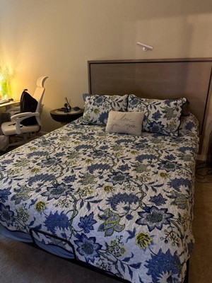 [This review was collected as part of a promotion.] Im so excited this is adorable. The floral pattern looks great in my guest room, which already was deemed the blue room. It's made well and is light, so it's a great coverlet for my duvet. I love the matching pillow shams. The backside is a nice blue, which looks great to overturn the top. Overall, it really pulled the room together and looks beautiful.
