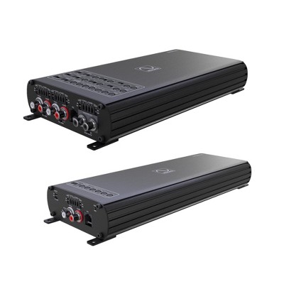 - Features include compact sizes, variable gain adjustment, adaptive OEM load technology, professional RCA inputs, and high-level speaker terminals.