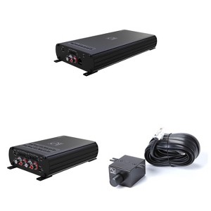 This bundle includes a Wavtech LINK750.1PLUS 750 Watt Mono Amplifier, a Wavtech link300.4mini 300 Watt 4-Channel Amplifier, and a Wavtech linkRC Remote level control (RLC) for linkDQ.