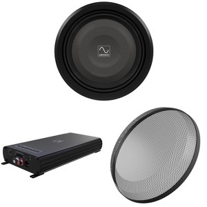 This bundle features premium audio equipment for your car sound system. It includes a Wavtech TP12G Grille compatible with thinPRO12 Shallow Subwoofers, a Wavtech thinPRO12-2 750W 12" Shallow Subwoofer 2 Ohm, and a Wavtech LINK750.1PLUS 750W Mono Amplifier. The thinPRO12 subwoofer boasts impressive specifications like 750W RMS power handling, a 3-inch mounting depth, 5-inch voice coil, FEA optimized dual-gap motor structure, and a honeycomb Nomex and glass fiber cone. Its dimensions are 11 1/8in with a standard 12-inch cutout. The amplifier, LINK750.1PLUS, delivers 750W output at 1 ohm, with durable components like the Dual Rail Voltage Power Supply, adjustable EQ, and subsonic filter. It offers flexibility with a 4/2 or 1 ohm switch, compatibility with OEM systems, and a compact size of 10.25”x5.5”x1.65”. Other features include a bassFREQ preamp, adaptive OEM load technology, remote level control capability, and various safety and connectivity enhancements. The amplifier ensures top-notch subwoofer tuning with its features and compatibility with the optional linkRC remote control. Choose this bundle for high-quality audio performance in your car.