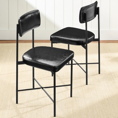 Wavy-Patterned Dining Chair Set of 2, Farmhouse Style, Upholstered Dining Chairs with Black Metal Legs, Suitable for Dining Rooms
