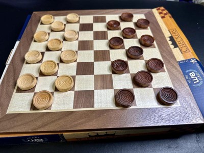 I received a free sample of this game from WE Games. This is a really nice checker set. Solid wood board as well as the checkers. This looks fancy and will look great on my coffee table. Can't wait to start playing with family gatherings!