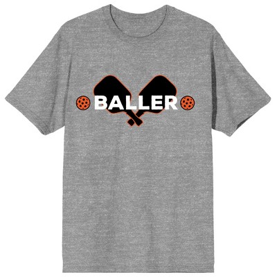 • CUSTOM DESIGN: Stand out on the court with this graphic tee's design showcasing two pickleball paddles and balls behind bold white lettering reading "Baller," adding a stylish edge to your pickleball attire.
