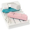 The Multi Cinch Book Binding Machine makes book binding quick, easy and affordable. It is the best binding tool on the market for home, school and office projects. The Multi Cinch comes with two different, interchangeable punch types, circle and disc, and other styles are sold separately. Collect them all and punch perfect holes with customizable hole spacing on any size project. Plastic and metal bindings come in fun, trendy colors, and elastic book bands are perfect for travel journals, planners, and diaries. The possibilities really are endless with Multi Cinch! Includes Multi Cinch base, Disc Cartridge, and Circle Cartridge. Imported.