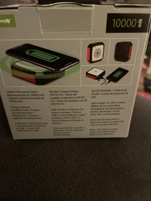 Enjoy your camping trip with peace of mind. This all-in-one solar power bank, flashlight and wireless charger bring you unique utility and reliability. With 40-hours of battery life, the powerful LED lantern provides lighting all night. The convenient design of this power bank allows you to charge three devices at once. Set your phone onto the power pad and plug into the two USB charging inputs to power up all your mobile devices. Camp with peace of mind with a lantern that can also charge your devices.