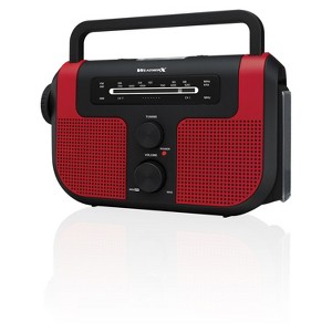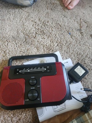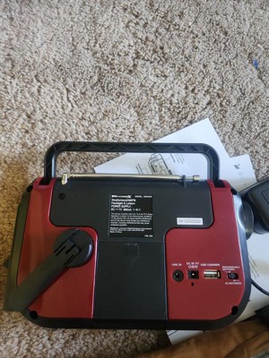 WeatherX WB/AM/FM Solar Charge Radio - Red WR383R: Hand-Crank, USB Port, NOAA Alert