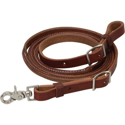```html Weaver Leather Single-Ply Heavy Harness Split Rein 1/2" x 8' Experience the difference of reins crafted for performance and comfort. The Weaver Leather Single-Ply Heavy Harness Split Rein is a customer favorite for a reason – it feels incredible in your hands, offering a secure and reliable connection to your horse. Crafted from burnished Hermann Oak russet harness leather, these reins are built to last. The rich tallows infused within this rugged, weather-resistant leather ensure exceptional durability, providing years of dependable service and maintaining their beautiful appearance. You'll appreciate the consistent feel in both hands, a result of meticulous pairing before cutting. This attention to detail means greater control and confidence during every ride. Key Features: Frequently Asked Questions What type of leather are these reins made from? These reins are crafted from high-quality, burnished Hermann Oak russet harness leather, known for its ruggedness and weather-resistant properties. How does the leather ensure durability? The leather is infused with tallows, which contribute to its extra durability. This makes the reins resistant to weather and ensures they will last for years with great looks and dependable service. Why do the reins have a consistent feel? The reins are paired before cutting is complete. This careful process ensures that both reins have a consistent feel in your hands, allowing for better control and a more balanced ride. Are there any special features for maintenance or replacement? Yes, these reins feature water loops with tie laces, which allow for quick and easy replacement if needed. The edges are also smoothed for added comfort. What is the intended use for these reins? These reins are ideal for everyday riding and western riding styles, offering a comfortable and reliable connection for various equestrian activities.```