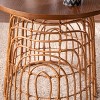 Bring home a boho look with this round accent table. A circular wood tabletop displays potted plants or decor pieces, while the woven base creates an organic feel in your living area. Pair this end table with a set of chairs and create a relaxing reading space, or place in your bedroom to add a coastal vibe to your decor. Your eclectic design comes full circle with this round side table in your living space.