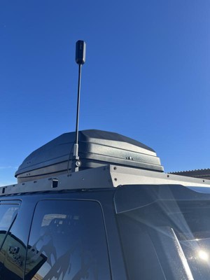 - Includes drive reach booster, 17 in. OTR antenna truck edition, slim low-profile antenna, power supply, 2 mast extensions, coax cable side-exit adapter, antenna spring, cable adapter, and thread lock packets