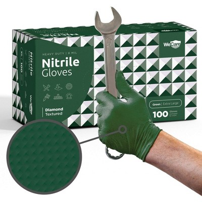 WeCare Diamond Textured Orange Nitrile Gloves, 8 Mil Thickness - Perfect for Industrial & Automotive Work, Green 50 Pack - XL