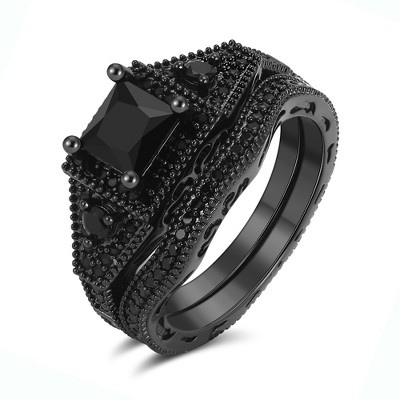Wedding Band Ring for Men or Women Plain 2mm Sterling Silver Ginger Lyne Collection - Black,11