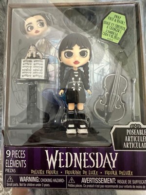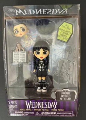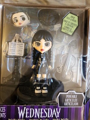 - Wednesday Collectible Doll: Immerse yourself in the somber delight of the Wednesday Addams deluxe figure set. Inspired by the hit TV sensation Wednesday, this stylized rendition of the morbid teen icon nails her vibe perfectly.