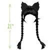 - Wig features Wednesday’s signature long, black braids and bangs, and comes with a cat-ear headband, inspired by Wednesday’s costume in the Poe Cup boat race episode.