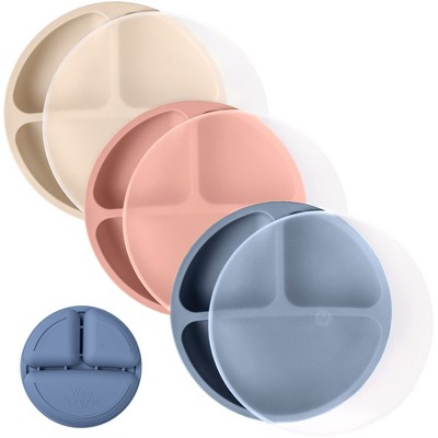 WeeSprout Baby Plates with Lids, Food Grade Silicone Divided Plates for Kids - 3 Pack