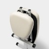 - Vegan, pebbled leather with a powder-coated, stainless steel base.