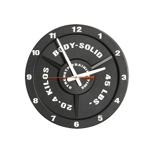 Add a bold touch of fitness style to your space with this Weight Plate Clock. Designed to replicate the look of a 45 lb Olympic weight plate, this wall clock combines strength and function in one. Made from durable polymer resin, it offers the rugged look of gym equipment but weighs just 1 lb for easy hanging. The accurate quartz movement ensures precise timekeeping, while the classic black-and-white design complements any workout area or home gym. Powered by a single AA battery, this clock is the perfect blend of fitness inspiration and everyday practicality.