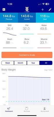 [This review was collected as part of a promotion.] This awesome Weight Watchers scale not only tracks your weight it will keep track of heartrate- bm- and more with the app. It can be set for up to 4 people and track all your totals and has a final weight loss goal you can keep up with. The app covers it all. Can also be used without app to keep your weight.