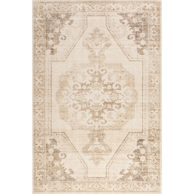 Well Woven Verdant Vines Modern Damask Border Casual Oriental Contemporary Floral Formal Gradient Soft Beige Area Rug - 1 of 4