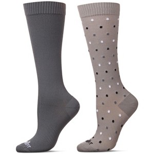 Wellfit Women's 2 Pair Pack Dotted/ Solid Compression Socks Gray-Gray 9-11 - 1 of 3
