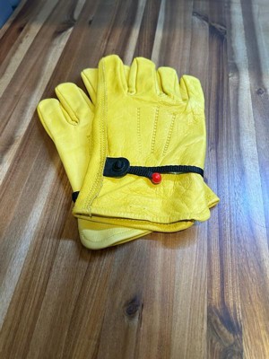 [This review was collected as part of a promotion.] Had a chance to use it for some light work outside now that the weather permits. The hide feels very soft and of good quality. It also fits very well and has a good grip. My pair arrived in two slightly different shades of yellow, which doesn’t bother me given that this is a tool and not a fashion statement. I am not confident in the longevity of fastening system as the base seems to have a potential failure point in how it is sewed into the glove. I would have preferred Velcro for quicker more secure adjustment.