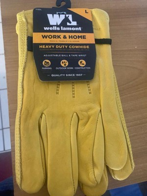 [This review was collected as part of a promotion.] Wells Lamont makes some of the best cowhide leather gloves on the market. Made with 100% cowhide grain leather, theyre very durable and puncture resistant. They have a very nice adjustable zip tie-ball type strap that keeps out dirt and debris while you work keeping the gloves in place. Very nice gloves I give a 10/10 overall!